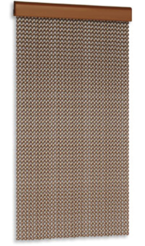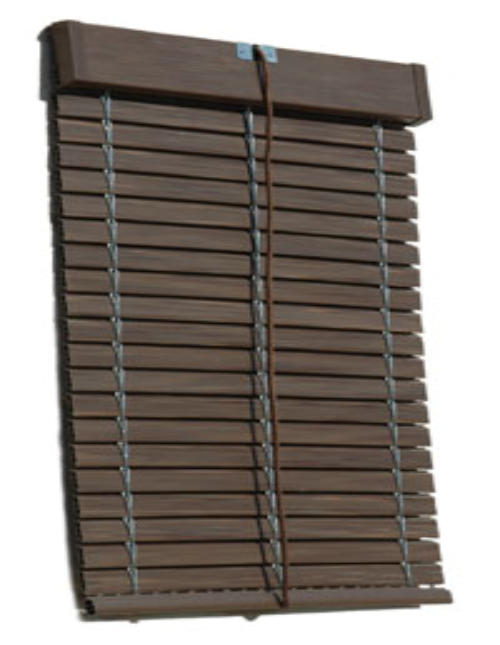 Es una persiana tradicional de exterior, fabricada en madera y plástico, tejidas con gancho de alambre galvanizado.